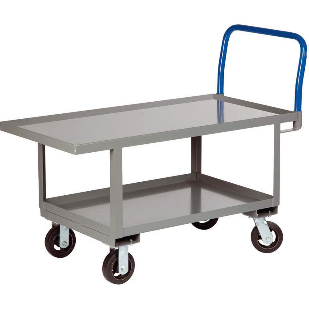 | Overall Length | Overall Width | Shelf Length | Load Capacity | Caster Wheel Dia. | Handle Type | Color | Finish | Price |