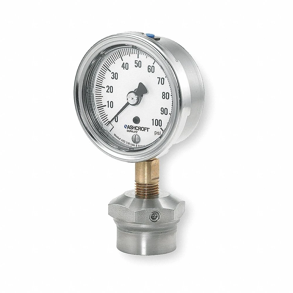 ASHCROFT 251009AW02L/310SSLXCG100 Pressure Gauge with Diaphragm Seal, 0 to 100 PSI, 1009/310-315, 2 1/2 Inch Dial, Glycerine