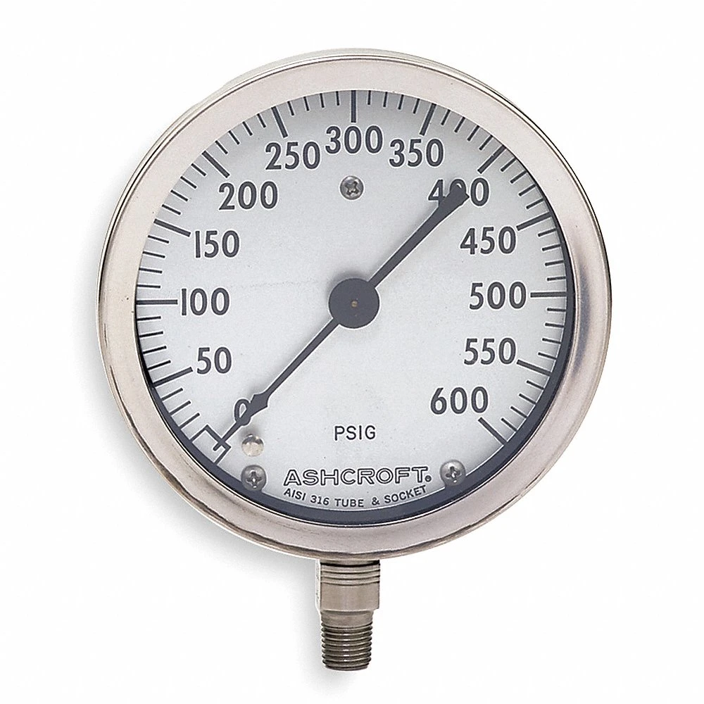 ASHCROFT 45-1009A 02L 600 PSI Industrial Pressure Gauge, Corrosion-Resistant Case, 0 To 600 Psi, 4 1/2 Inch Dial, Bottom