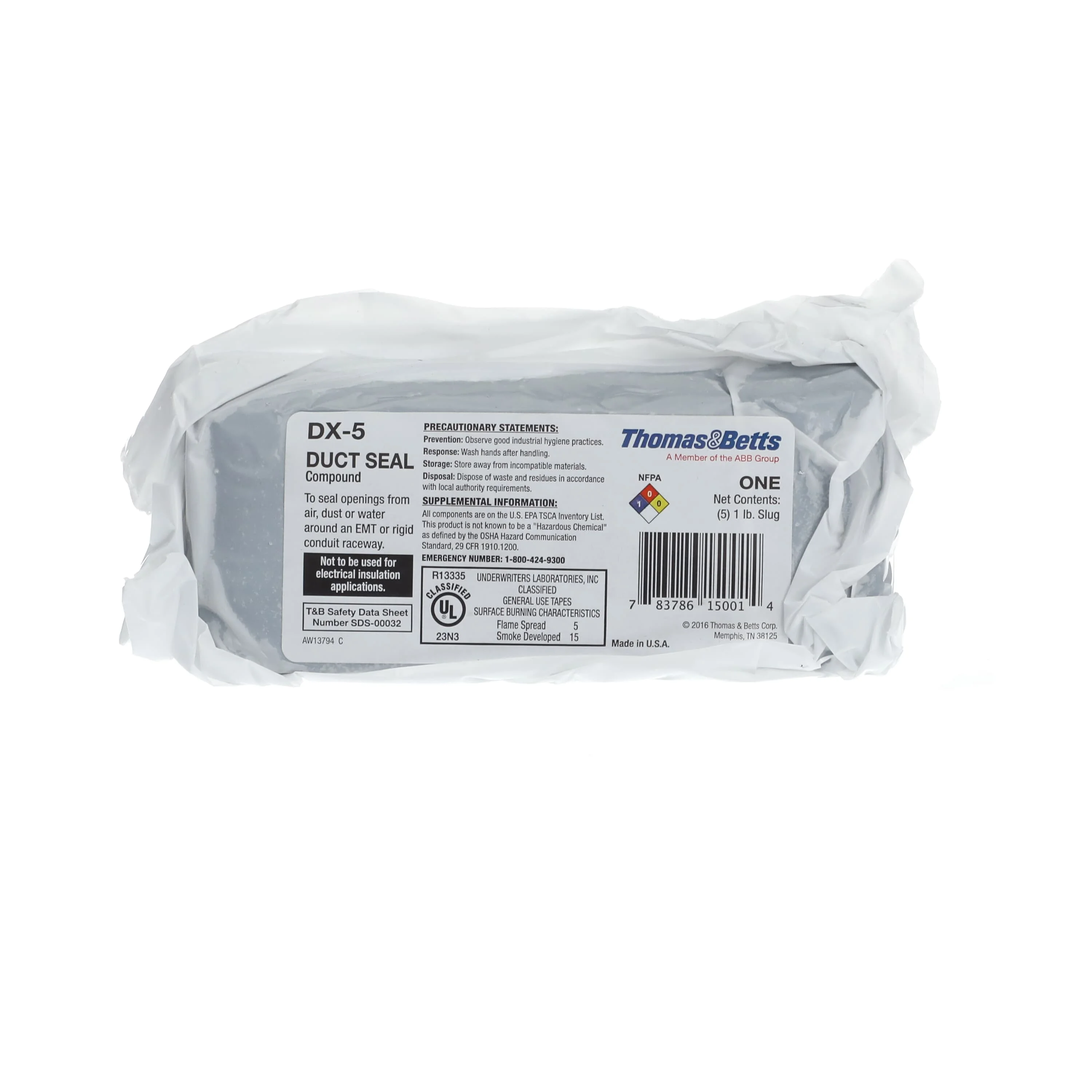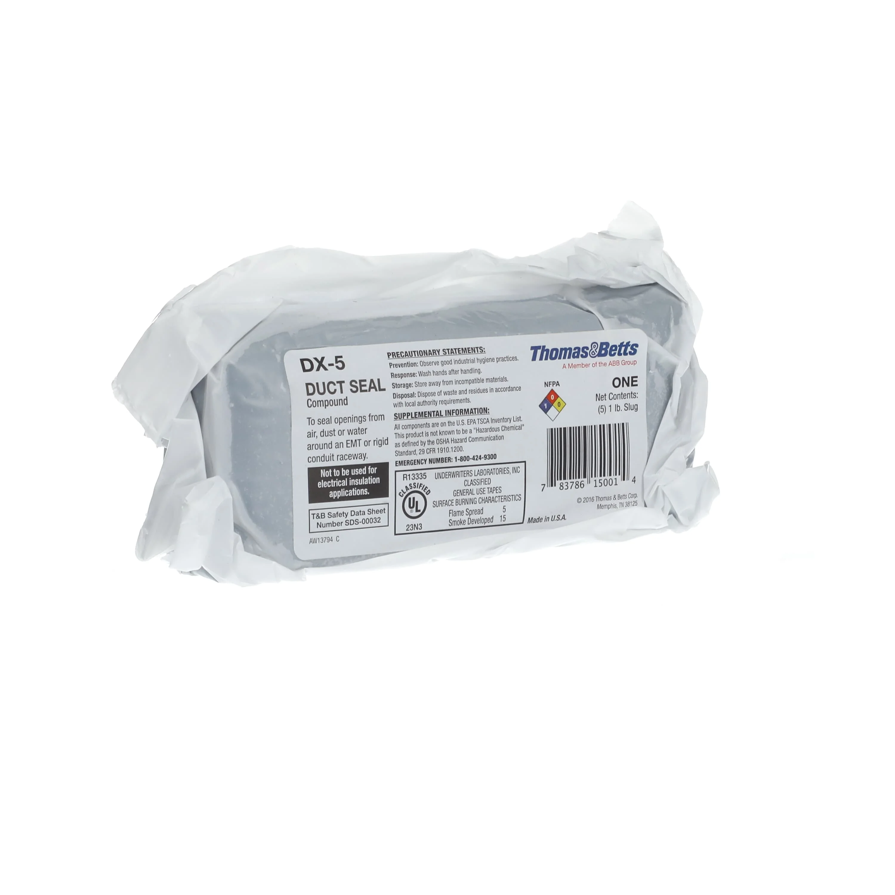 BLACKBURN (T&B) DX-5 Duct Seal Compound, 1 Pound Package, To Seal Openings From Air, Dust Or Water Around Emt
