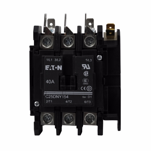EATON C25DNY154AL Definite Purpose Contactor, Quick Connection, 110-120 Vac, 1No, 1Nc, Non-Reversing