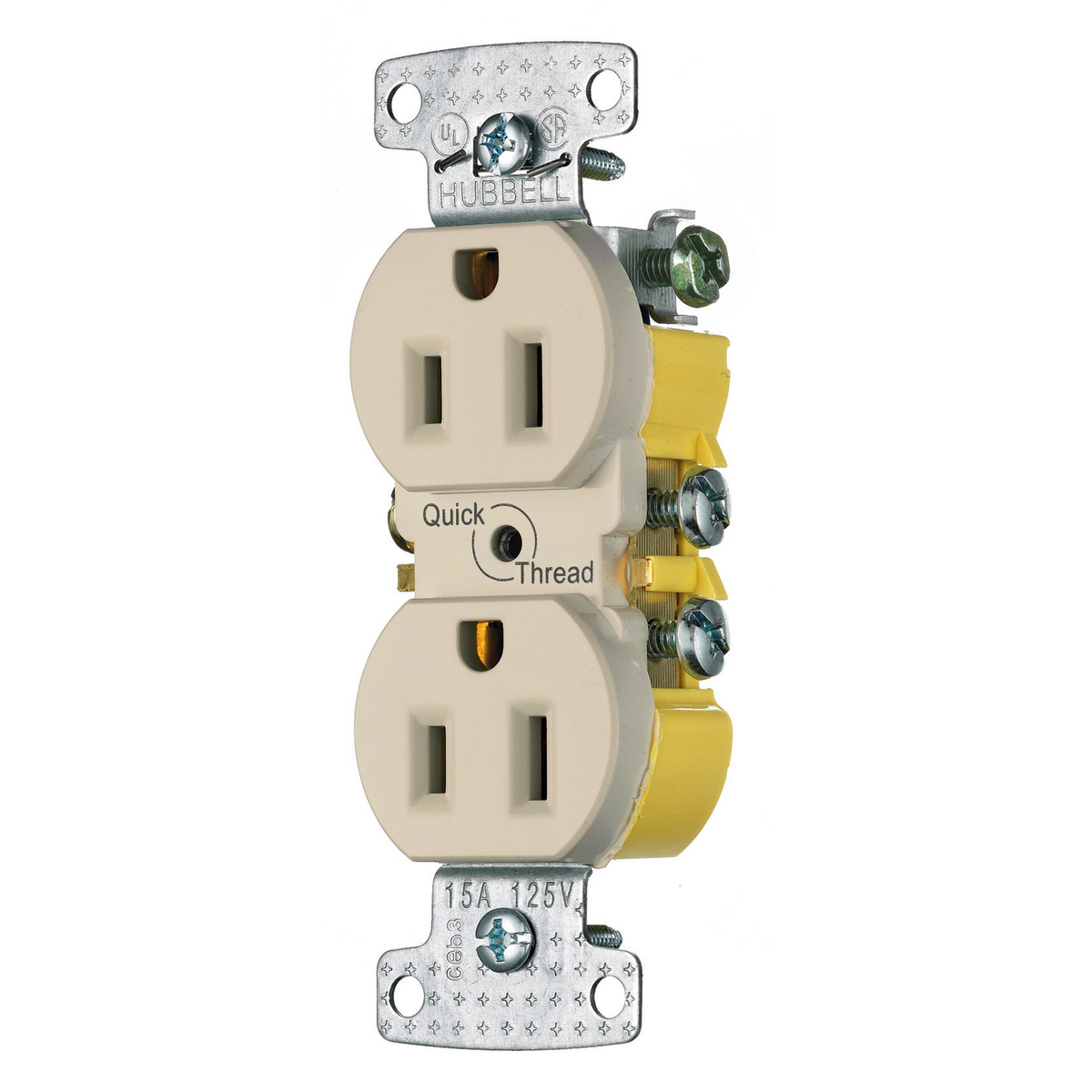 HUBBELL WIRING DEVICE-KELLEMS RR15QAL Duplex Receptacle, 15A, 125V, Almond