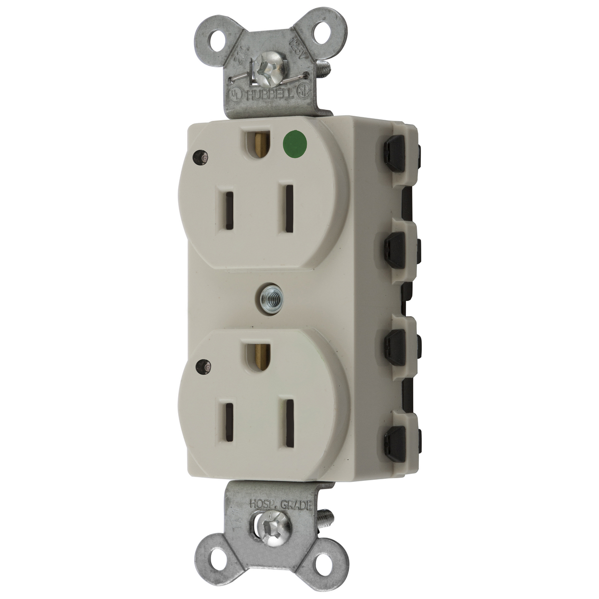 HUBBELL WIRING DEVICE-KELLEMS SNAP8200LAL Straight Receptacle, Duplex, 15A 125V, Nylon, Light Almond
