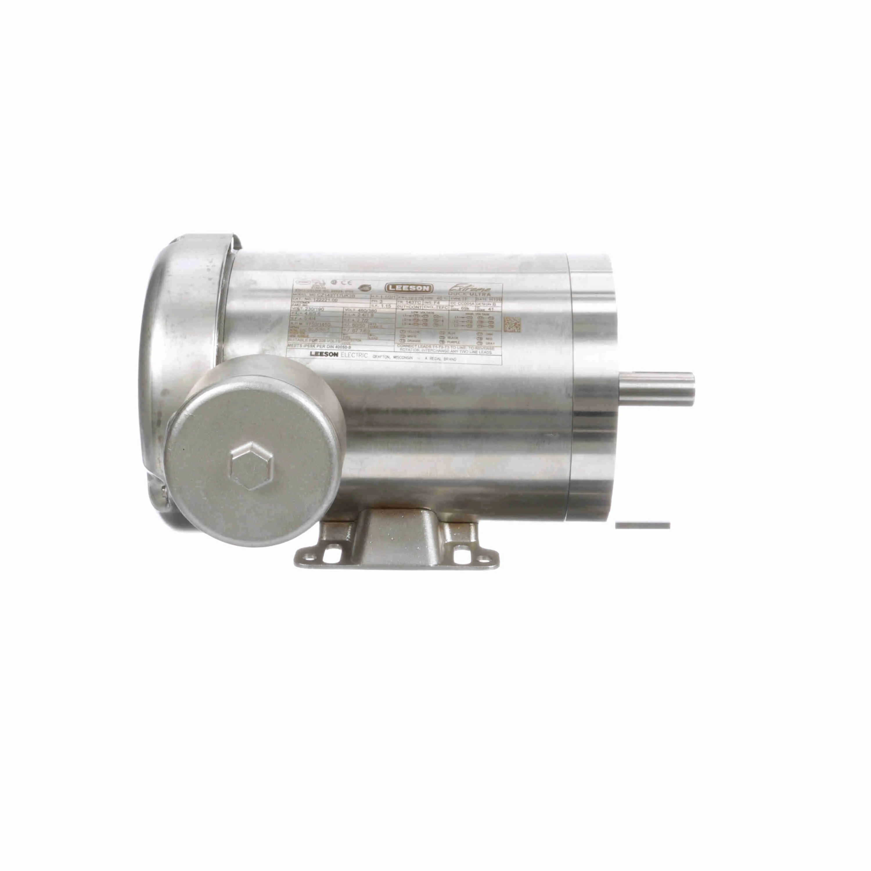 LEESON 122221.00 CZ143T17UK3B Washdown Motor, 3 Phase, 1800 RPM, 230/460V, 1.50 HP