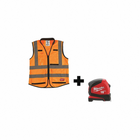 MILWAUKEE 48-73-5052, 48-22-6616 High Visibility Vest, ANSI Class 2, U, L/XL, Orange, Solid Polyester, Zipper
