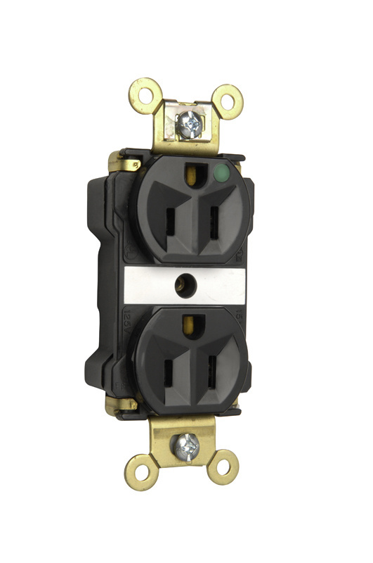 PASS AND SEYMOUR PT8200-ILGRY Extra Heavy Duty Duplex Receptacle, Hospital Grade, Illuminated, 15A, 125V, Gray