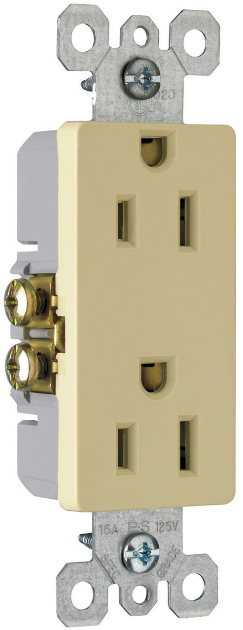 PASS AND SEYMOUR TM885-I150 Duplex Receptacle, 15A, 125V, With Pressure Plate Ivory, 150PK