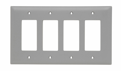 PASS AND SEYMOUR TPJ264-GRY Decorator Opening Wall Plate, 4 Gang, Gray