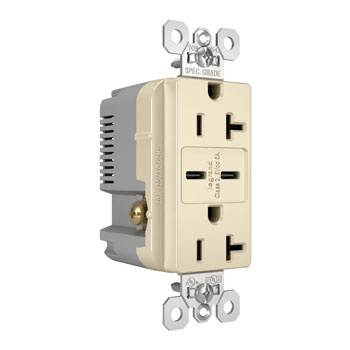 PASS AND SEYMOUR TR20USBCC6LA USB Charger Receptacle, Tamper Resistant, Fast Charging, 20A, 125V, Light Almond