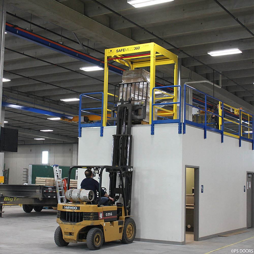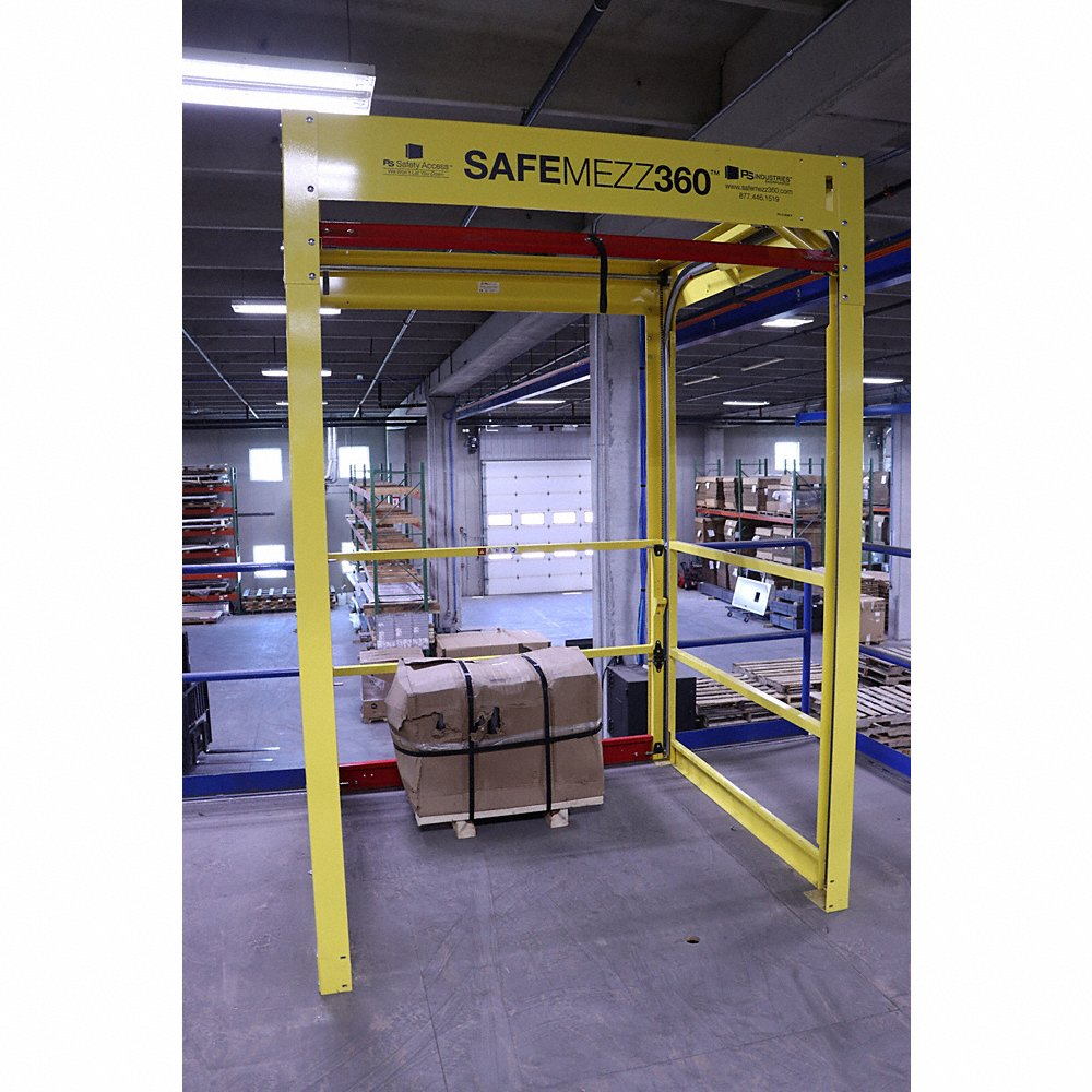 PS DOORS SMZ-MM060 Mezzanine Safety Gate, 60 Inch Opening Width, Powder Coated Yellow