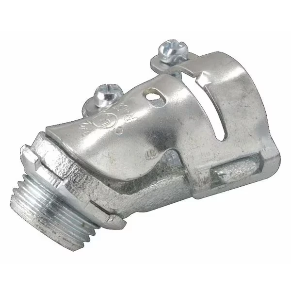 RACO 2221 Connector, Flex, Ac/Mc, 45, 3/8 Inch Size, Die Cast Zinc