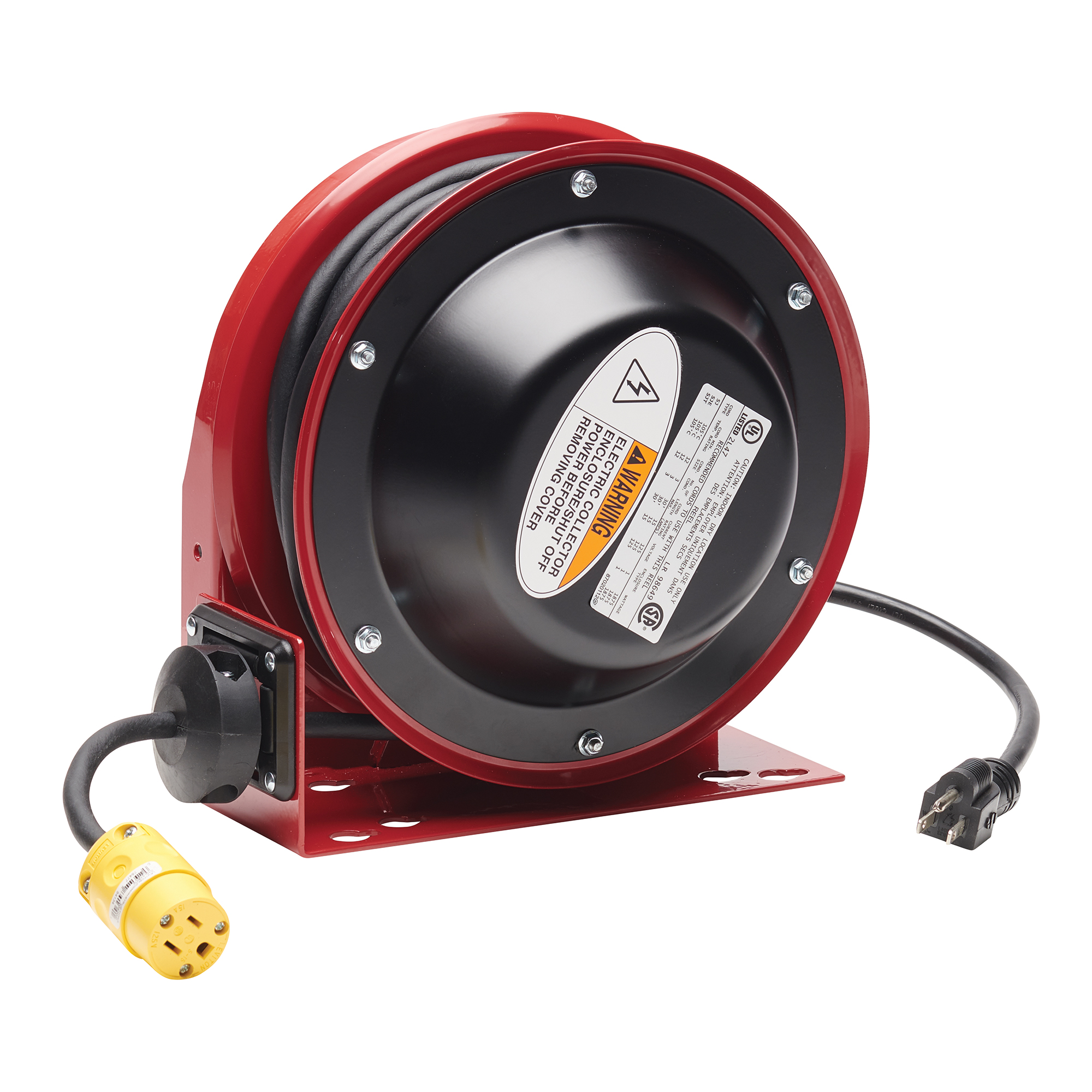 ,Reelcraft’s new Series 3000 cord reels are all-steel construction and ultra-compact for a wide range of bench mount or mobile applications with critical space requirements. These compact reels easily fit within a 1 ft. x 1 ft. space. The reels incorporate multiple slotted mounting holes to accommodate many configurations. An optional guide arm accessory is available for multiple adjustment positions of the cord. All steel components are individually powder coated to virtually eliminate corrosion. *UL listed*, , ,Compact size – Reel easily fits within a 1 ft. x 1 ft. space., ,Easy to mount – Multiple slotted mounting holes to accommodate many configurations., ,Inlet located on base – Eliminates the possibility of cord/hose interfering with spool operation., ,Optional guide arm accessory (#S602805) – Guide arm integral to reel base on standard reel, optional accessory available for multiple adjustment positions., ,