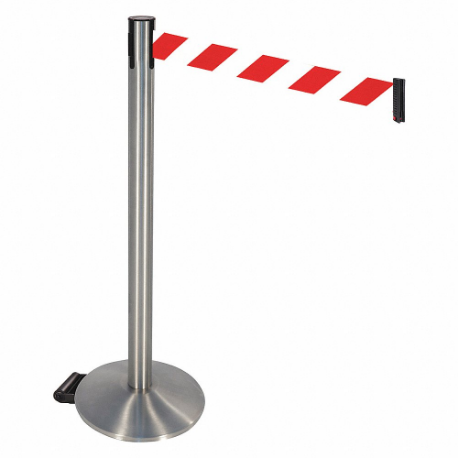 RETRACTA-BELT 334SS-RWD Barrier Post With Belt, Satin Stainless Steel, 40 Inch Post Height