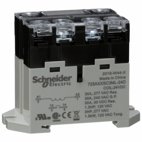 SCHNEIDER ELECTRIC 725AXXSC3ML-24D Enclosed Power Relay, Din-Rail & Surface Mounted, 30 A Current Rating, 24VDC, Spst-No