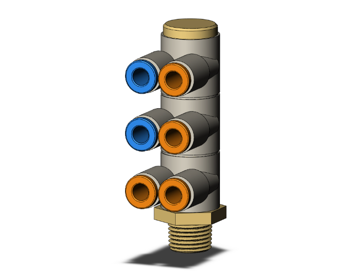 Threaded Adapter To Multiple Tubes Shape Triple Branch Ray