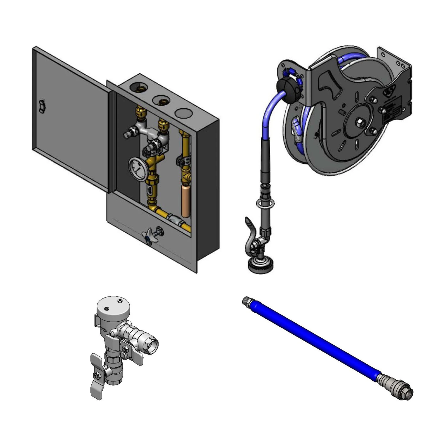T&S B-2339-7132MVBH Hose Reel Control Cabinet, Control Valve, Check Valves, Open 35 Feet Hose Reel