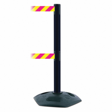 TENSABARRIER 886T2-33-STD-NO-D5X-C Barrier Post With Belt, PVC, Black, 38 Inch Height, 2 1/2 Inch Dia.