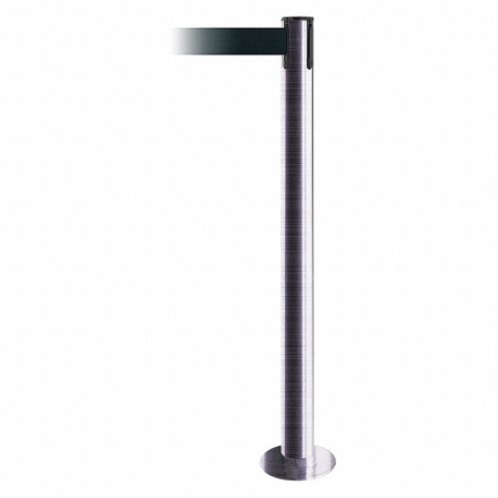 TENSABARRIER 889F-1S-1S-STD-NO-G7X-C Fixed Barrier Post With Belt, Steel, Satin Chrome, 36 1/2 Inch Post Height, Flange
