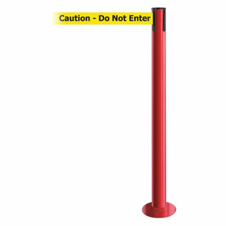 TENSABARRIER 889F-21-21-STD-NO-YAX-C Fixed Barrier Post With Belt, Red, 36 1/2 Inch Post Height, 2 1/2 Inch Post Dia, Flange