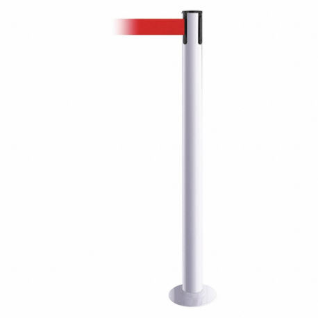 TENSABARRIER 889F-32-32-STD-NO-R5X-C Fixed Barrier Post With Belt, Steel, White, 36 1/2 Inch Post Height