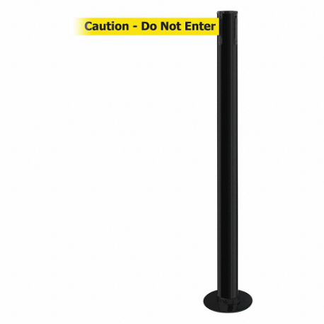 TENSABARRIER 889F-33-33-STD-NO-YAX-C Fixed Barrier Post With Belt, Steel, Black, 36 1/2 Inch Post Height, 2 1/2 Inch Post Dia