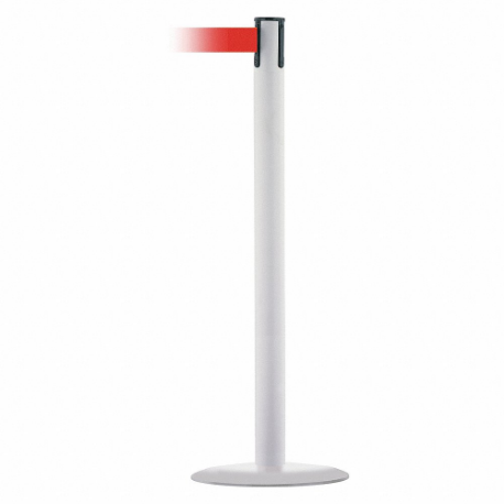 TENSABARRIER MARINEPOST-32-STD-NO-R5X-C Barrier Post With Belt, Stainless Steel, White, 38 Inch Height, 2 1/2 Inch Dia.