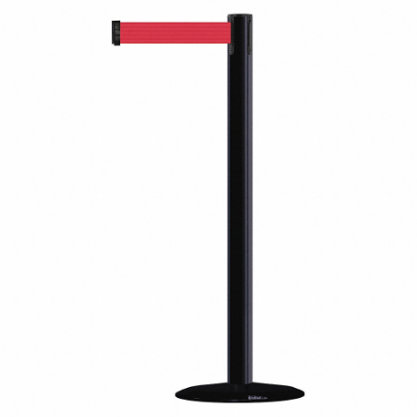 TENSABARRIER MARINEPOST-33-STD-NO-R5X-C Barrier Post With Belt, Stainless Steel, Black, 38 Inch Height, 2 1/2 Inch Dia.