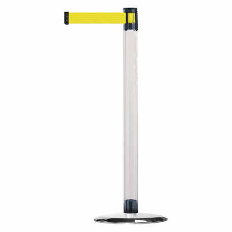 TENSABARRIER TCLU-1P-STD-NO-Y5X-C Barrier Post With Belt, Polycarbonate, Clear, 38 Inch Height, 2 1/2 Inch Dia.