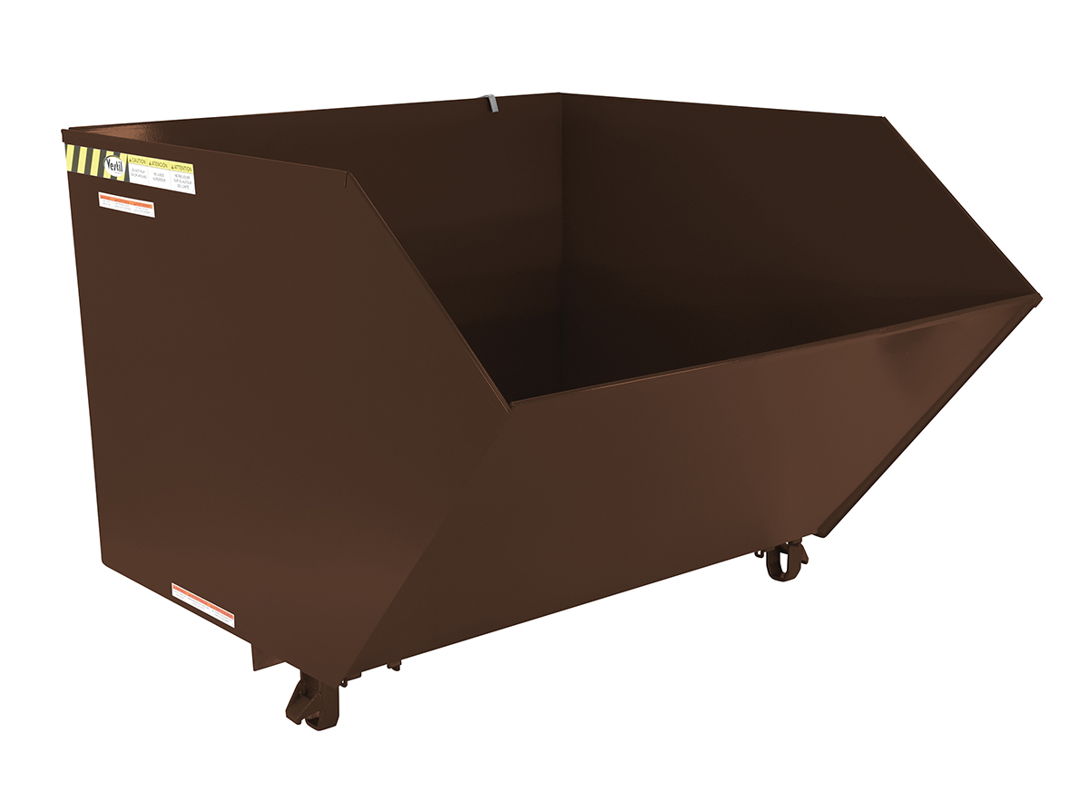 VESTIL H-150-HD-BRN-EB Steel Heavy Duty Low Profile Self Dumping Hopper, 1-1/2 Cubic Yard, 6000 lb Capacity, Earth Tone Brown